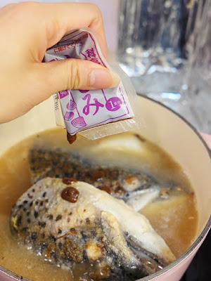三文魚有益, 含有大量Omega 3 同DHA大家都知, 但平時多數食魚生, 熟既三文魚我就好麻麻, 前排行過街市見到大大個三文魚頭都係20蚊左右, 平到笑呀, 我見親D大魚頭總係有股衝動把牠帶回家, 今次滑了手, 買了一個回家煲個超簡單既日式三文魚頭麵鼓濃湯, 大人同小朋友一齊飲, 有益又健康。