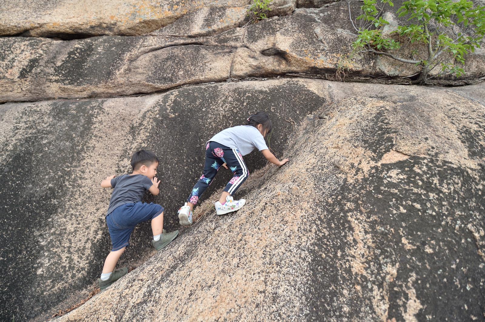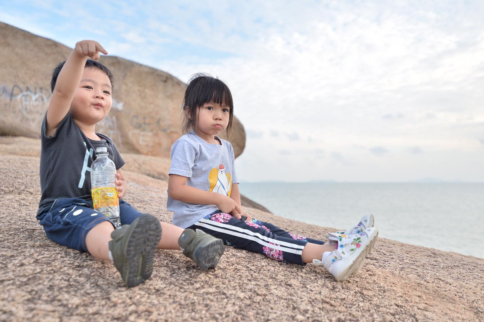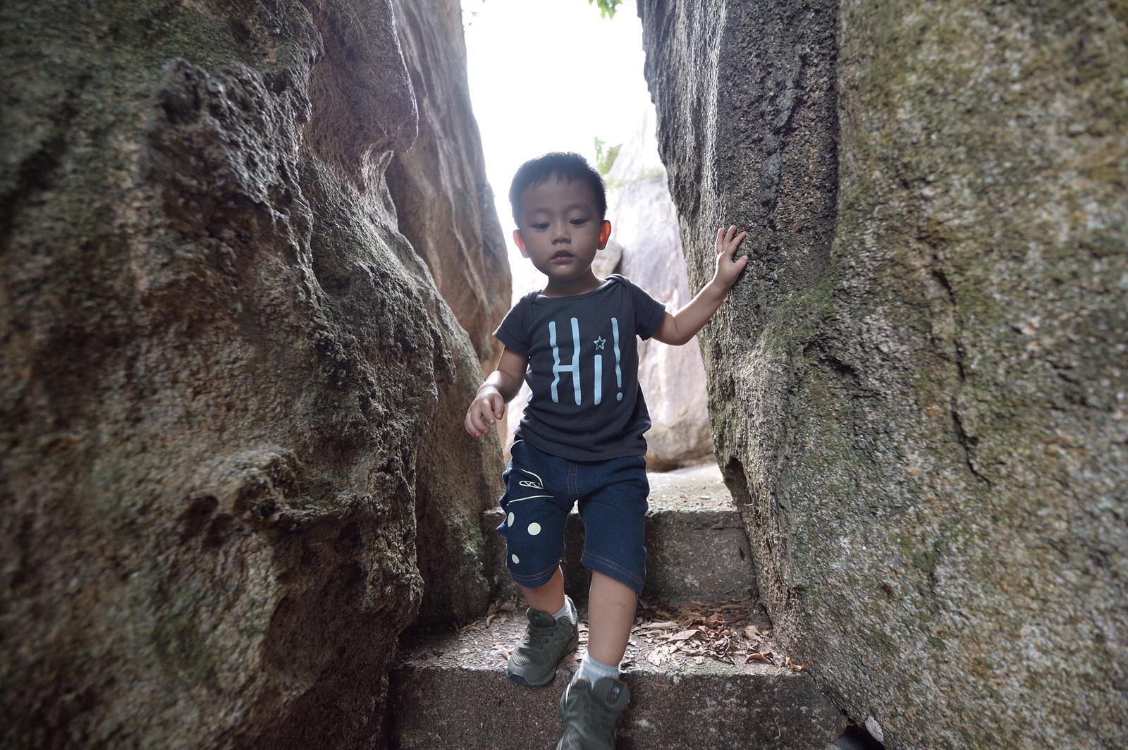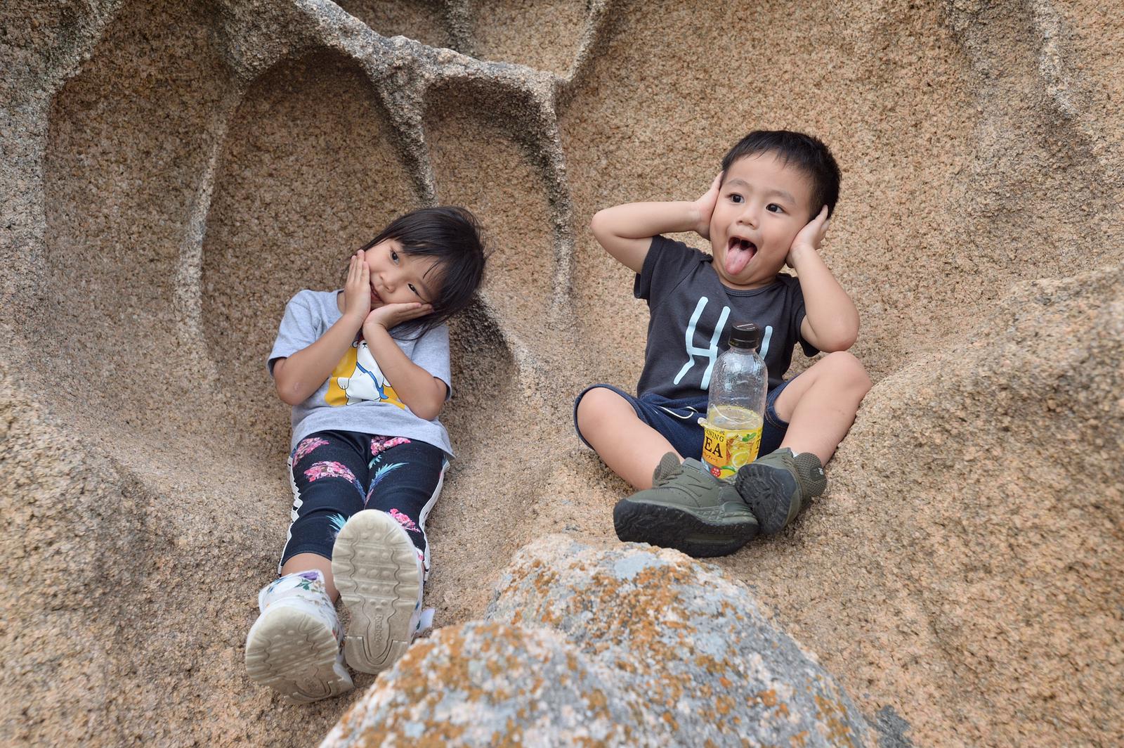 然後,我們往海岸線繼續走,路旁的巨石陣讓人忍不住躺下,吹著緩緩的海風,接受大海的洗禮,小朋友也很舒適的坐下欣賞,環境真的不錯~~~