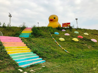 這裏的玩樂設拖不算太豐富,而且設拖也有點懷舊,不過這裡勝在有大草地及沙池,小朋友可以跑跑跳跳或玩玩沙,簡單而快樂!另外,如果遇到好天氣的話,可以去彩色樓梯及吹氣黃鴨的位置拍拍照,效果不錯!