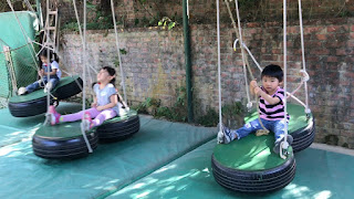 簡單一個麻包袋及波浪形的滑道設計,瞬間飛馳而下,那離心力令人覺得非常刺激。