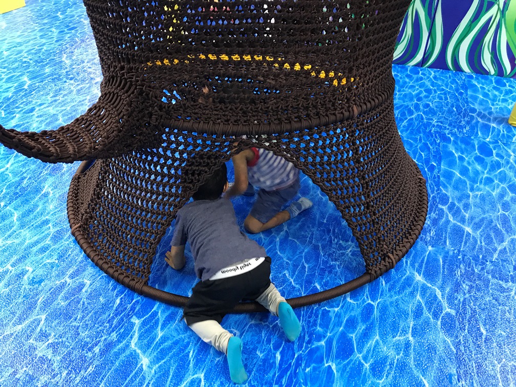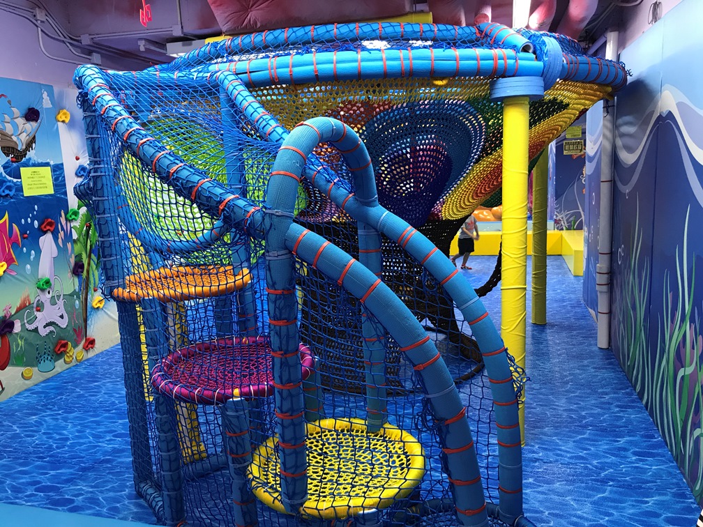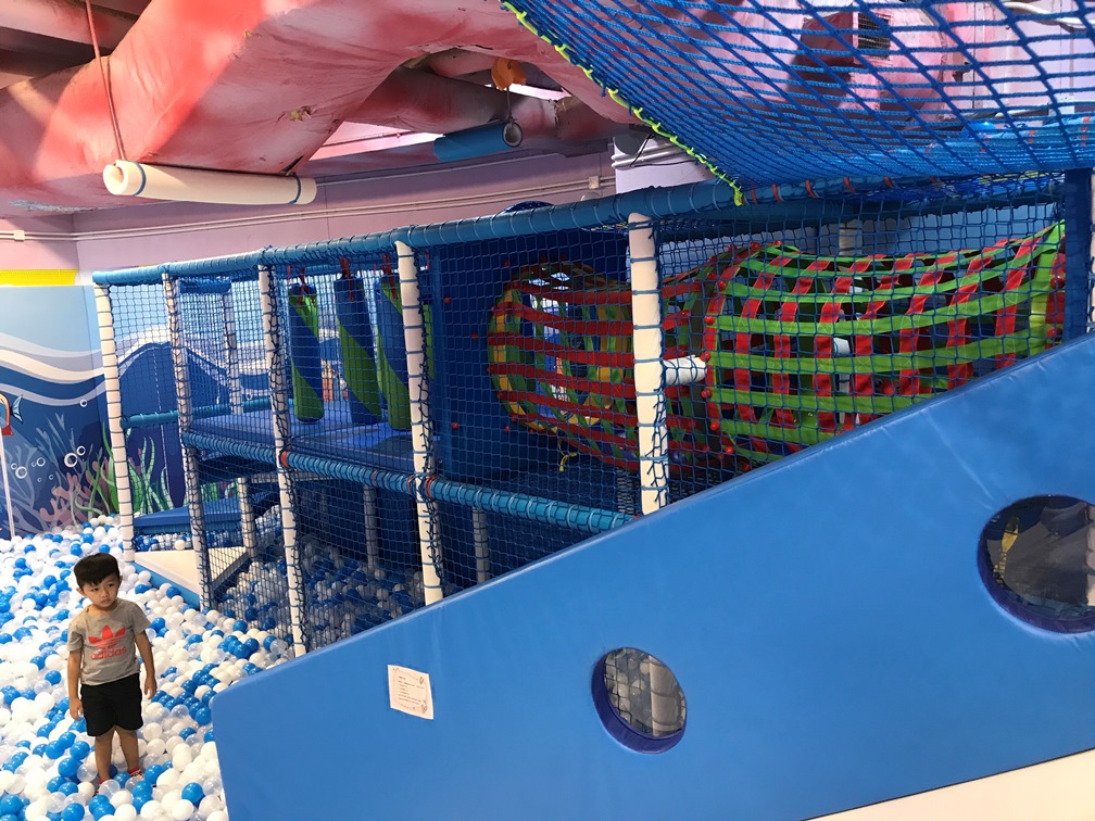 這裡的彈跳迷宮是小小的一種,但都足夠小朋友爬上爬下放放電了。