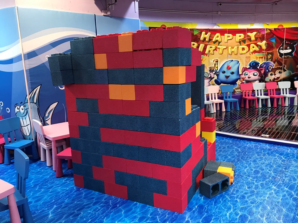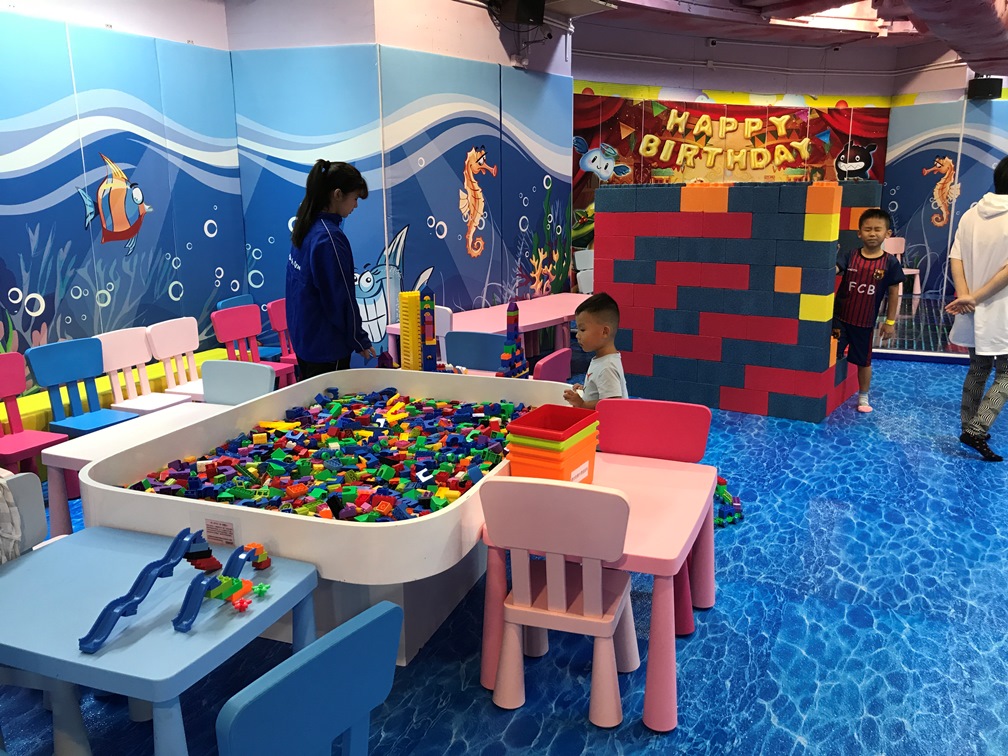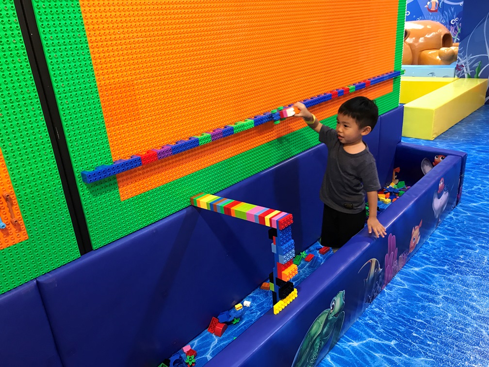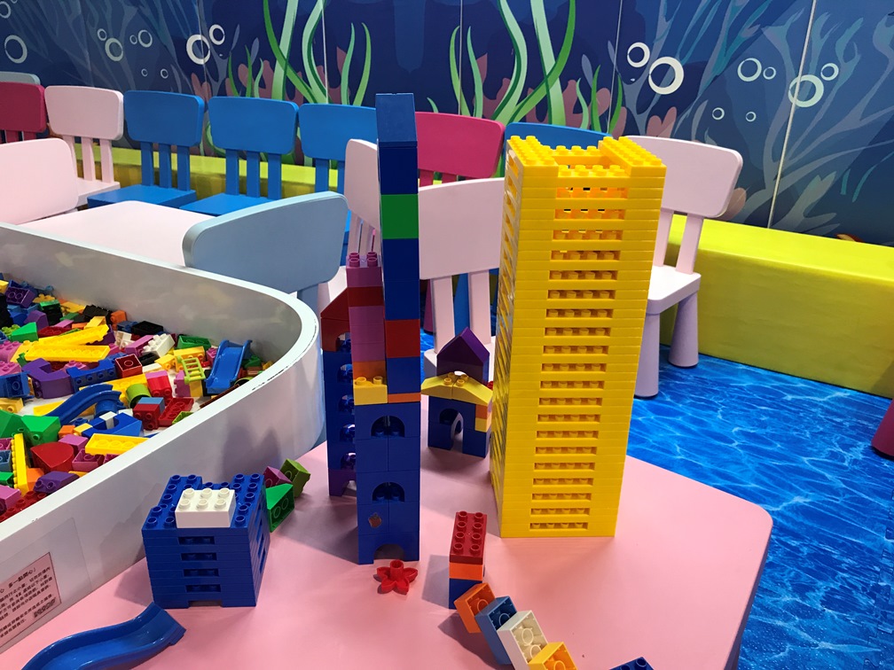 一進場就看到積木區,有一整枱的小積木及一座韓國環保物料的積木。另外,另一旁,還有一大幅積木牆,愛積木的小朋友必定不想離開!