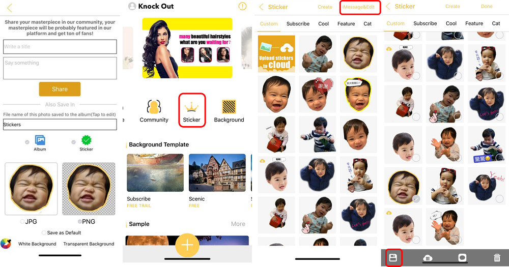 首先你要用photo edit app去die cut你想要整sticker嘅圖,我就用ProKnockout, 我覺得比較易整~