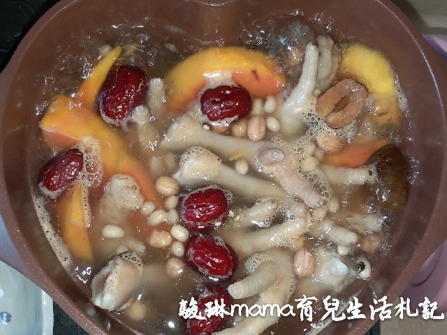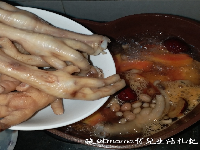 待再煲滾後加雞腳,然後改用細火煲約1.5小時!