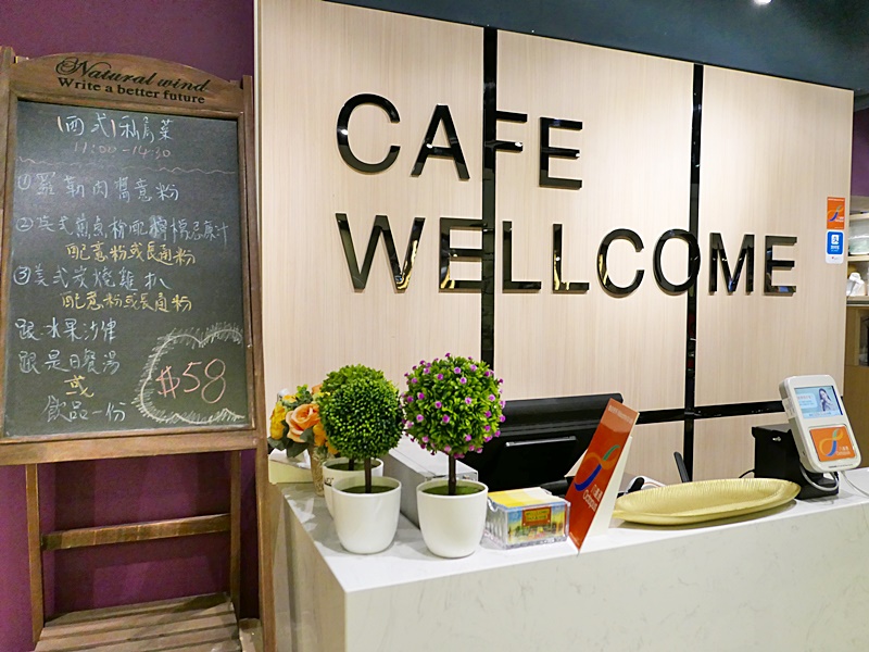 玩了2小時, 我們都 覺得很肚餓了, 要找餐廳吃點東西補充體力回回氣! 展貿的餐廳選擇也不少, 今次我們在職員的介紹下來到2樓的Café Wellcome 宏美餐廳用餐.餐廳主打健康、無添加美食, 每日新鮮製造,適合大人及小朋友.