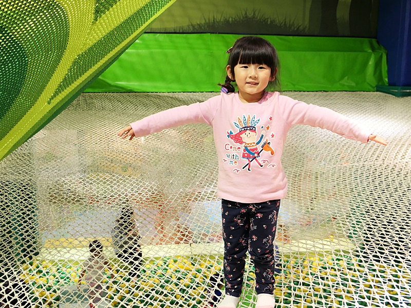 樂園高處有巨型繩網, 踏在繩網上可隱約見到下面的波波池, 但因重量限制, 只供小朋友玩樂, 家長只能在入口處看着小朋友.