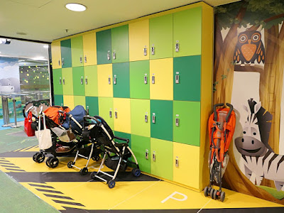 入場前可先放好嬰兒車和鞋, 門口有多個大型Locker, 嬰兒車停泊區和一排大鞋櫃, 設備齊全又整潔. Locker 租金$10-$20, 我們放置好個人物品後就準備入場了.