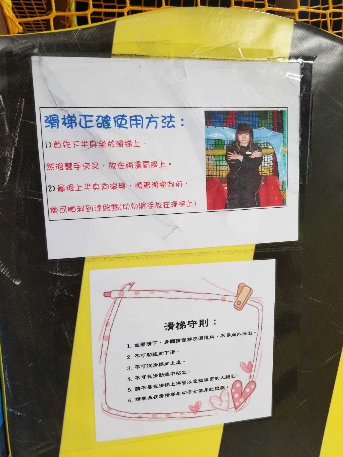 幸好安全措施也很足夠,滑梯下面有足夠高度的軟墊,而對面也有指示要大家不要停留!