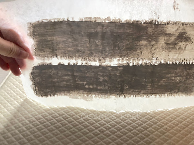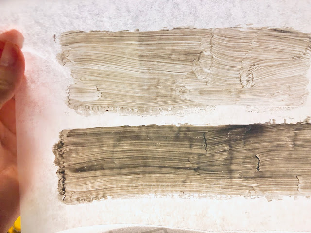3. 在烘焙紙上貼上透明膠紙(事後可以不費力的快速撕除),塗上顏料,塗一層太薄可能遮蓋不住想要隱藏的字,我塗上一層後,等半乾,又塗上2~3層。