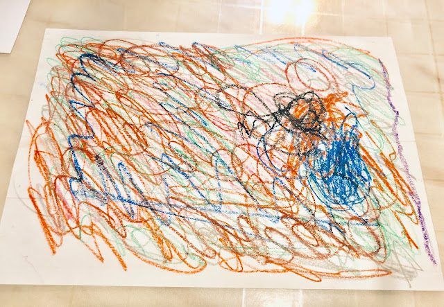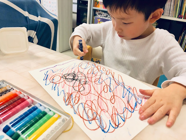 1. 用蠟筆請孩子塗滿整張圖畫紙,個人建議使用紙質較硬又光滑的卡紙來製作,一般的影印紙太薄,不太好刮,而且事後你可以重複利用這張刮畫紙哦!