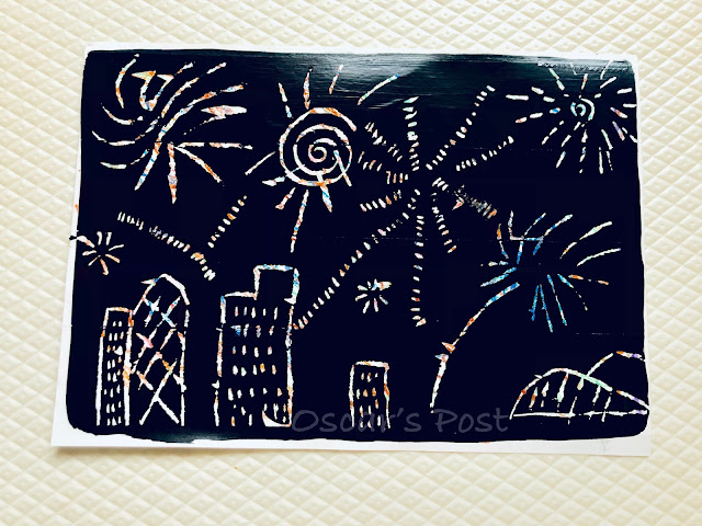 2. 用透明膠紙貼滿整張圖畫紙,塗上黑色顏料,等乾透就大功告成。