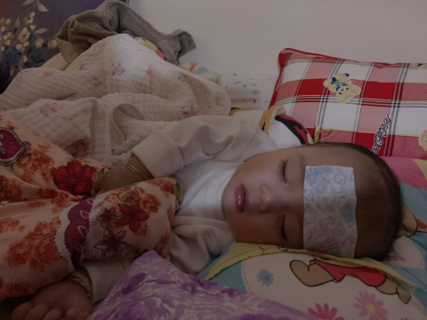 月中既時候,婆婆帶西瓜妹健康院打完6個月針,一如往常,打完針發燒,到第三日keep住又係燒下停下,奶又飲得少,超級無敵嗲!去睇醫生,話喉嚨有d發炎,拎左d退燒藥同消炎藥,買左退熱貼 比佢訓教有d燒貼住!