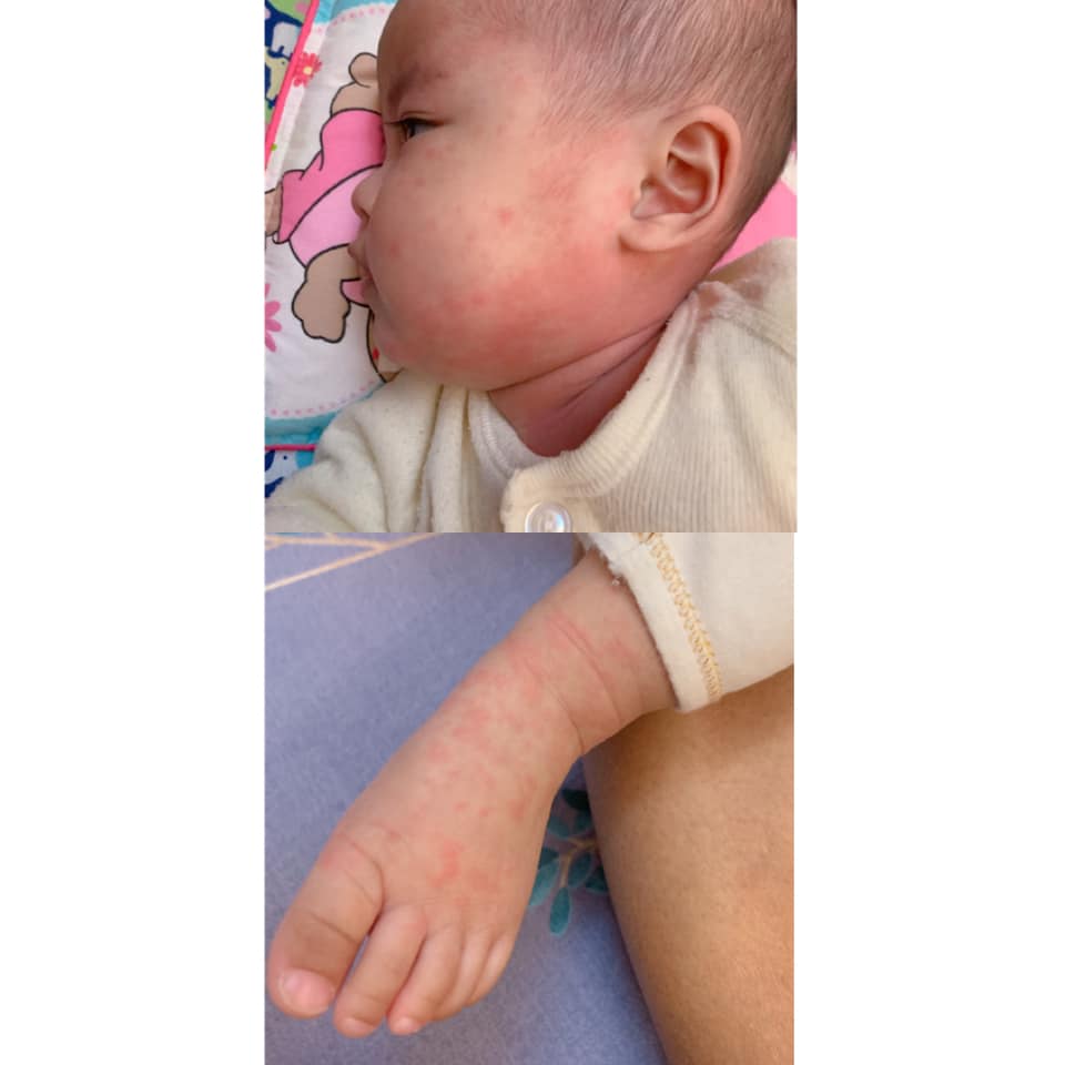 仲係keep住燒下停下,但就明顯燒少左。係第5晚..抱一陣突然開始喊 一揭開衫睇!成身紅色一點點點。立即叫婆婆睇!婆婆就話 得唔好再講。(傳統話 小朋友出疹唔好太大反應同不停講,因為愈講就有機會縮番入去 出唔到 有機會出多次)