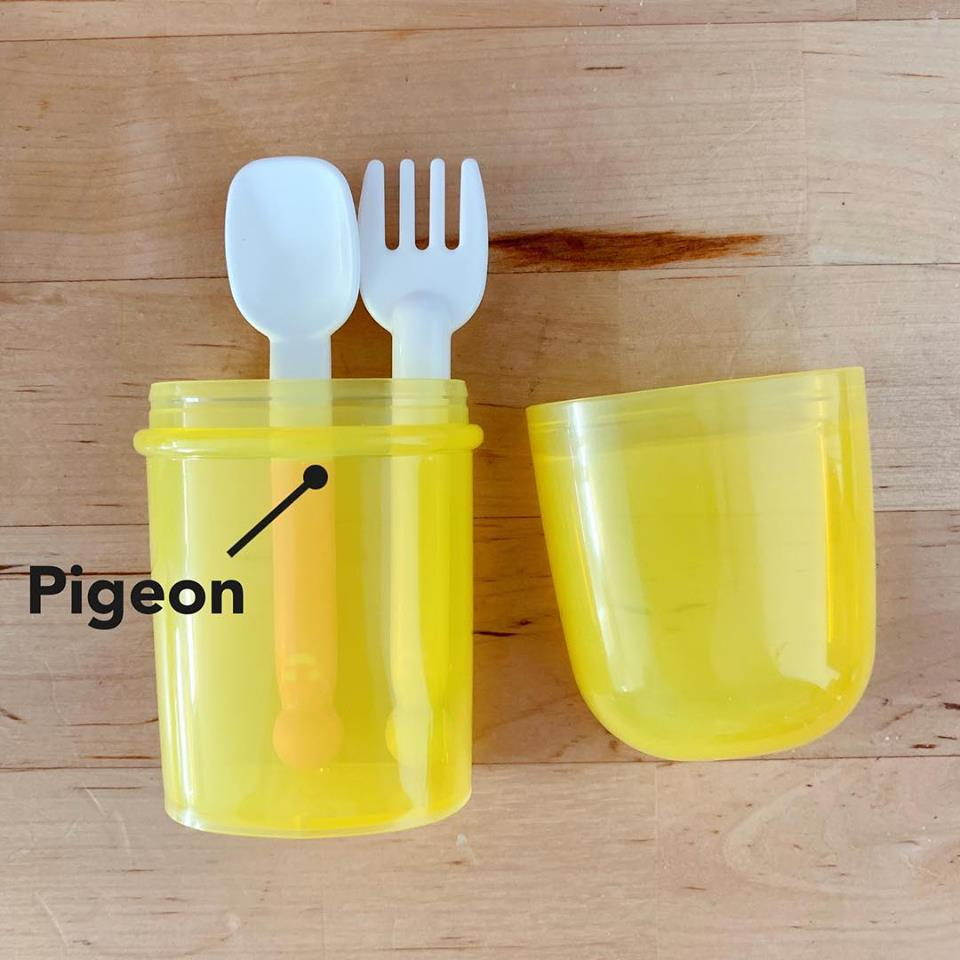 於是早幾日執櫃搵返契媽係日本買既小型餐具,佢說明書寫住適合一歲以上,咁計返依家d bb 咁聰明,平時既玩具同用品都早兩個月已經用到,就索性俾Jacob 試下自己拎住餐具食!