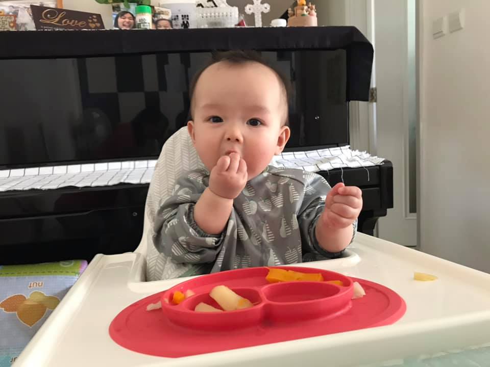 十個月,多謝媽媽每日花心思準備食物俾我,等我可以食到好多唔同的食物,仲可以自己拎住食,多謝你俾信心我去試,每次試新野我都好開心,多謝媽媽。
