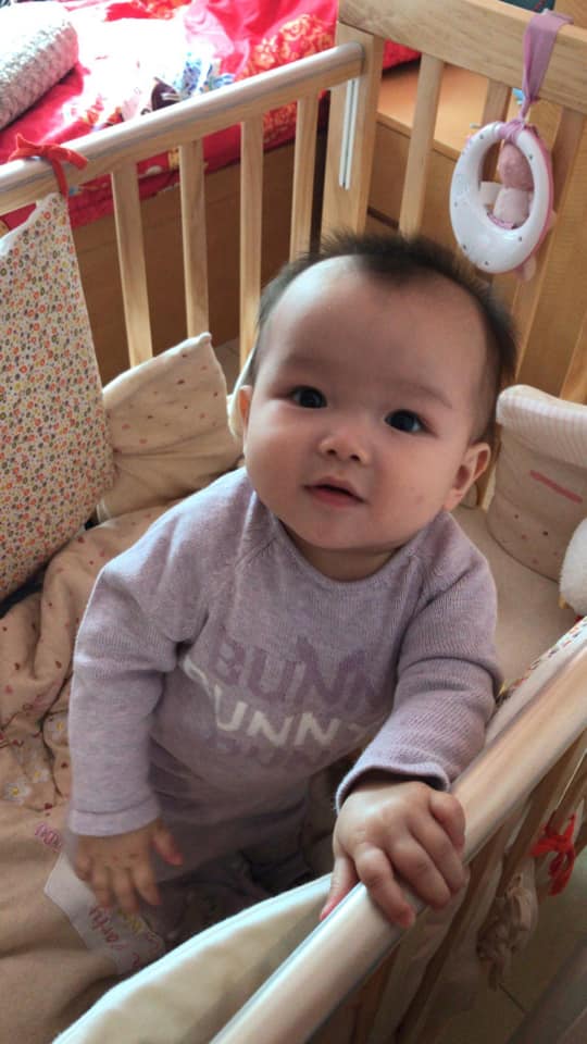 十個月,多謝你們俾我一張舒服的床,多謝媽媽每晚都陪我訓著,我都唔知點解要見到你係到,先訓到。每朝起身見到你們,就係我最開心的一刻,所以我一定笑架,好想你們快點抱起我,去你們張床到玩!仲有,爸爸你好忙,早上是我成日唯一見到你的時間,所以我成日偷望你架。
