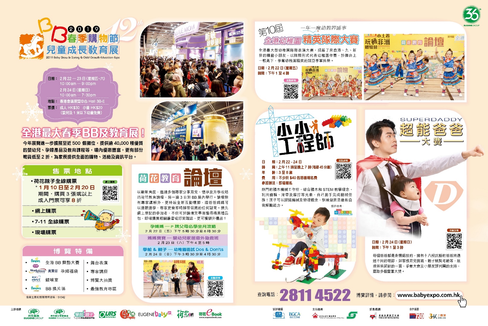 一、電子門票:去呢個網 https://eticket.eugenebaby.com/ 買就得喇,成功預訂後,電子門券會以電子郵件方式傳送到你輸入的電郵地址,只要喺會場出入口出示該電子郵件就可進入會場。