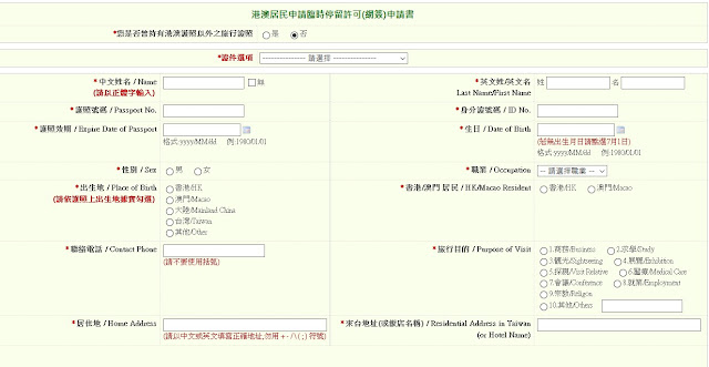 小提示: 身分証號碼 例如是 Z123456(7),只需要填寫Z123456就可以了,括號內的都不用填