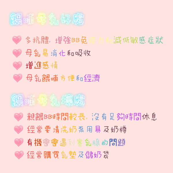 近年比較鼓吹餵哺母乳,而且世衛亦建議BB出生後至6個月全餵母乳,可以為BB同媽咪既健康帶來好多既好處!