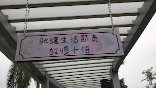 鋪設了不少花朵的長廊,非常美麗。而且長廊內更展示了慢活金句及知識版,展示與主題相關的知識,令人不禁駐足停留,把腳步放慢,細味生活。長廊盡頭更是「綠色婚禮場地」及「心連心」打卡位。