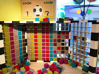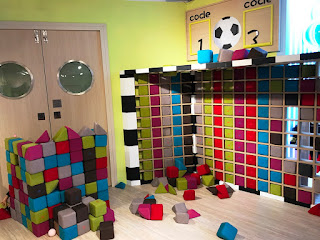有沒有留意到這個磁鐵積木區的框架似不似足球場的「龍門」?原來這個用了不同磁石布積木拼合而成的區域是以足球為主題!布積木內配有磁石,小朋友可以輕易堆砌,也讓小朋友發揮無限創意。