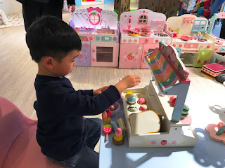 我家Alfred最喜歡的一個區域之一!!!這區有不同種類的木製玩具,包括:化妝櫃、坊真廚房及娃娃房子等。