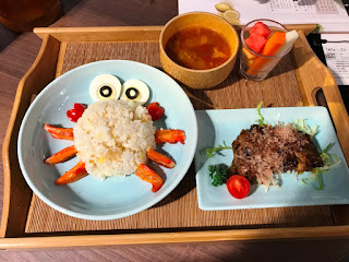 ▲兒童餐:螃蟹寶寶(有雞蛋抄飯、照燒雞肉、蔬果及紅菜頭湯)