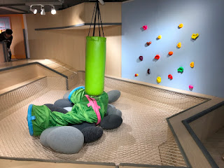 這個統感整合爬網區也是銅鑼灣店才有的。爬網區位於波波池後面,以運動為主題,除了有大沙包及攀石牆外,更有繩網陣讓小孩彈來彈去。絕對是放電一流的一個區域!!!