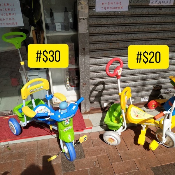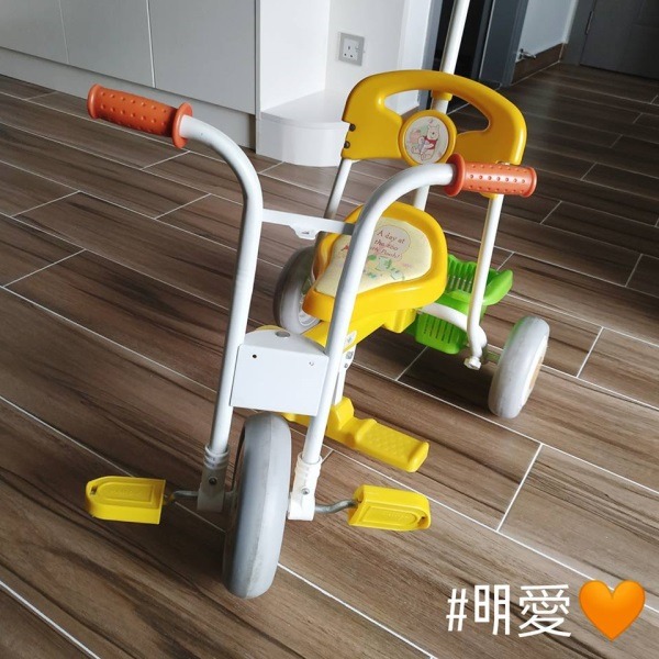 早前我們隨意在荃灣走走之際,忽然在一間舖頭前看到兩架BB單車,一枱看就看到「明愛懷寶坊」,目測兩架亦接近9成5新,所以我們馬上問問多少錢!「黃色20蚊!藍色30蚊!」 我心想也太平了吧!接著二話不說我們買了黃色BB單車回家了,其實藍色的質量更好,只不過黃色更適合現在筋肉寶寶坐。