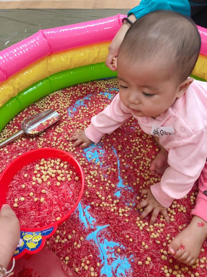 8個月既西瓜妹識坐識企,開始要試多d唔同既野,今次join左jac魔搞 messy play獲益良多