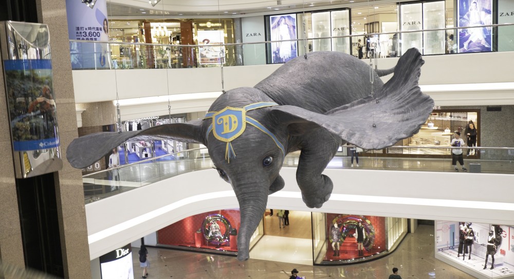 行到去2樓中庭,就會見到超巨型Dumbo喺空中飛翔,足足有6米闊㗎,勁震撼!