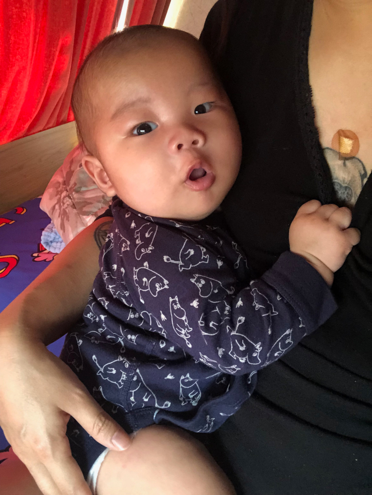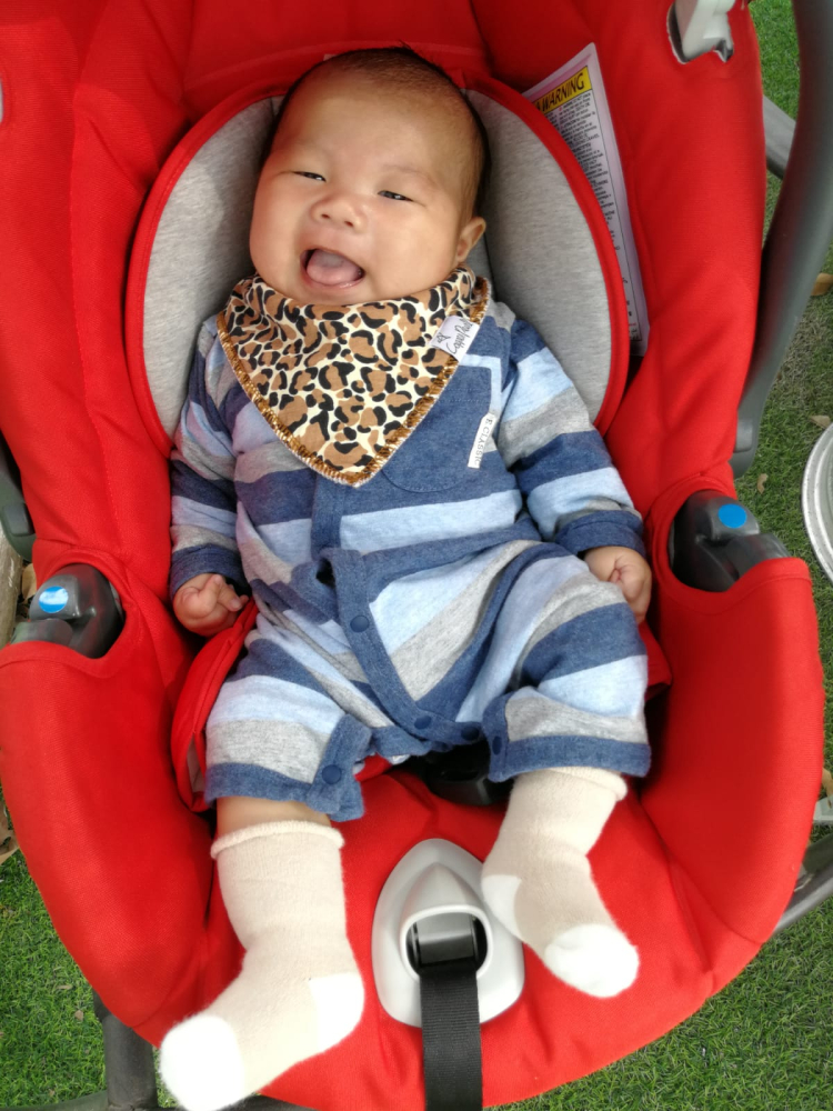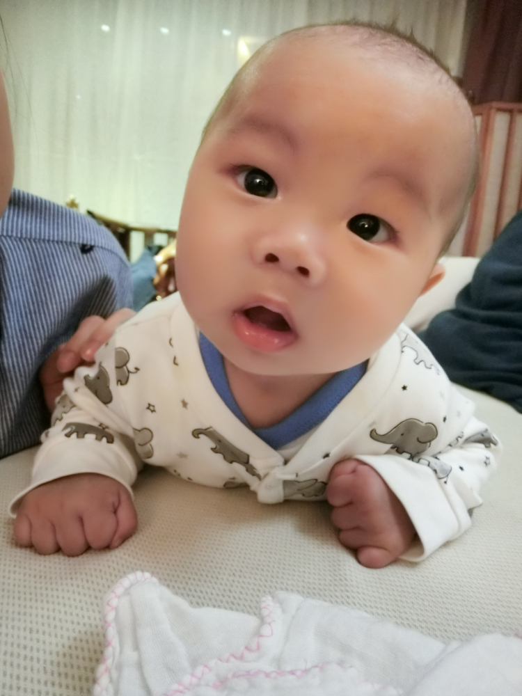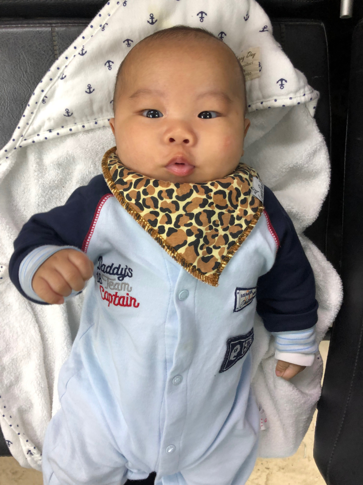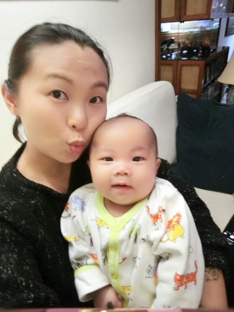 另外,現在餅餅剛過了一百天大,不知從何時開始,他最喜歡就是餅餅媽對他說 I love you和親他。當他聽到餅餅媽對他說 I love you,就會笑得合不攏嘴;而每次餅餅媽把嘴巴靠向餅餅的嘴巴要親他的時候,他就會O著小嘴來準備親親,然後親完就自己在笑。