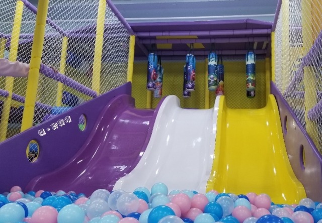 呢個大型波波池專區仲有兩條滑梯,分別係三滑道滑梯及旋轉管道滑梯。