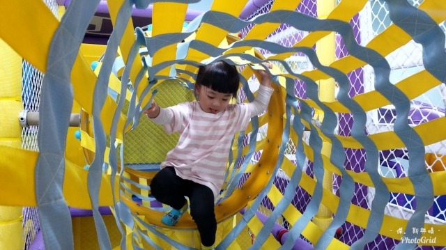係飛機造型遊樂架內亦設有多種不同障礙通道,想要玩滑梯?