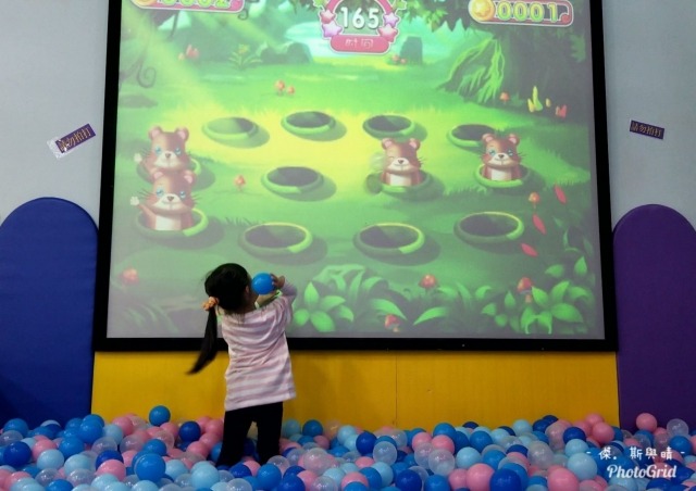 係波波池嘅另一邊設有互動投射遊戲區,可以考下小朋友嘅眼界、準成度及體力!