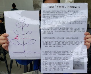 ▲▼蝶豆花長廊展示慢活金句及知識版,展示與主題相關的知識,包括蝴蝶知識、咖啡豆知識和花朵知識。