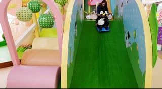 全港首個商場室內滑草場,小朋友可穿上企鵝服裝,爬上七彩隧道,一嘗室內滑草的樂趣。