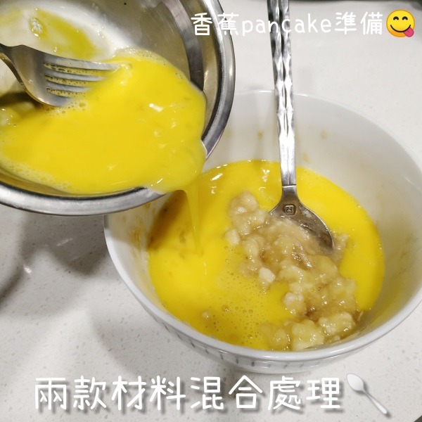 今次分享BB版香蕉Pancake比大家,只要兩款材料搞掂 - 蕉同蛋! 最後我用了兩蕉兩蛋!