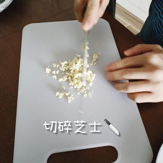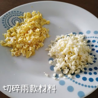 4. 將bb芝士同蛋盡量切細細粒