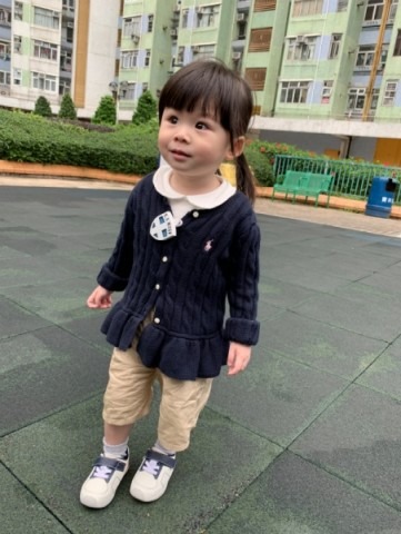 我揀左最愛既深藍色衫俾蠔豉妹妹著,好似穩重啲!