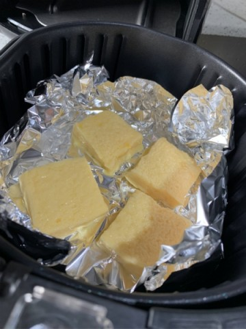 (無氣炸鍋就用煎既方法,不過要落牛油煎,咁會油膩少少,或者18m之後先試啦~)