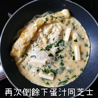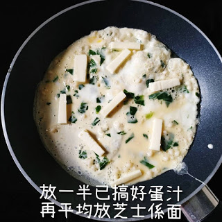 8. 再放餘下蛋汁,再落芝士係面