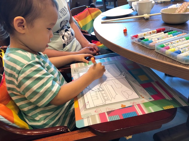 小朋友只要係四歲或以下,喺餐廳參與填色遊戲,用蠟筆油油油,就可以即時享用免費兒童餐一份(原價$68)喇!