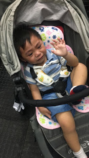 終於強行地換晒全身衫, 照出去, 其實一路同朋友仔媽咪whatsapp傾, 講米豬扭計要遲D, 朋友仔媽咪都好好人, 同我講如果佢唔想出, 佢地上嚟我地屋企都OK ga, 小朋友有時有情緒佢明白 (天使啊~!!) 但我唔可以比小惡魔米得逞! .\_/. 人又係你叫我約, 約完又話唔出, 邊個教你ga!! (真係想大把星你呀!) 唔容許呀!! 結果嚎哭住出到街, 比無數OL以 拐子婆 ge眼神望住我, 抱米豬行過巴士站, 佢見到d車分散吓注意力 (仲識指住架機場巴士話爸爸搭呢架巴士去機場), 就冷靜咗好多