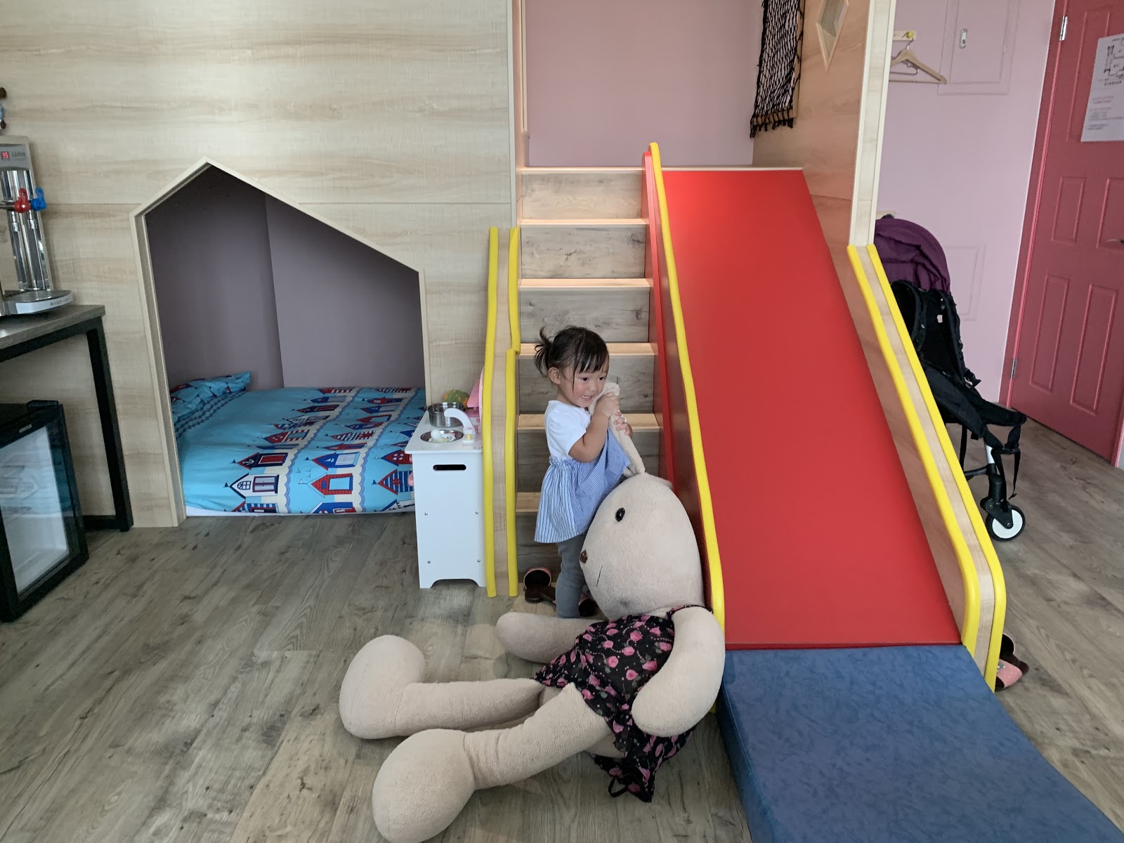 整體我覺得這個民宿還不錯,就是早餐不要有要求吧!同行朋友就覺得房間空氣比較差,兩位早上起來都有鼻敏感發作,不過同樣有鼻敏感問題的我就沒有發作。另外,女兒一直是很黏我的,可是在房間裡當我要去洗手間或是要洗澡,她也可以在房間自己玩,而且有差不多年紀的玩伴應該是最開心吧!