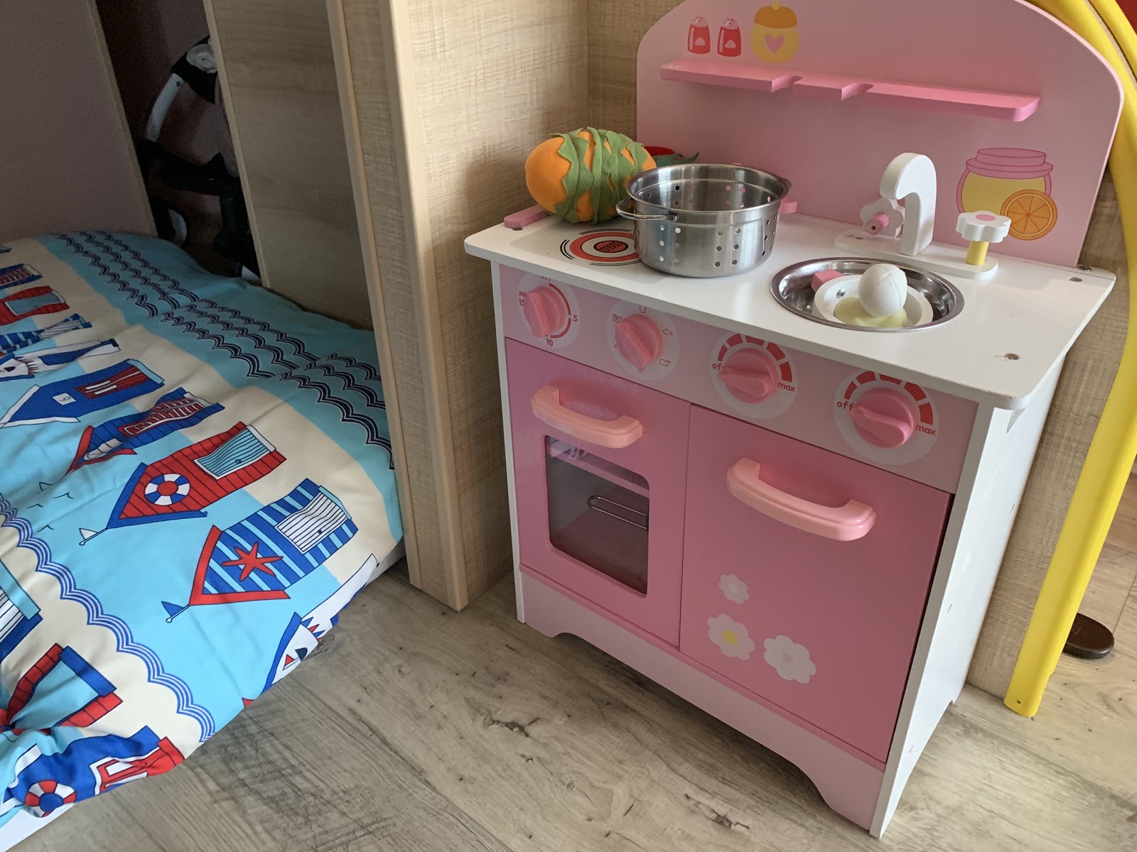 除了有滑梯,也有小廚房及一些玩具給小孩玩。不過女兒未有玩玩具箱裡的玩具,所以我沒有拍照。