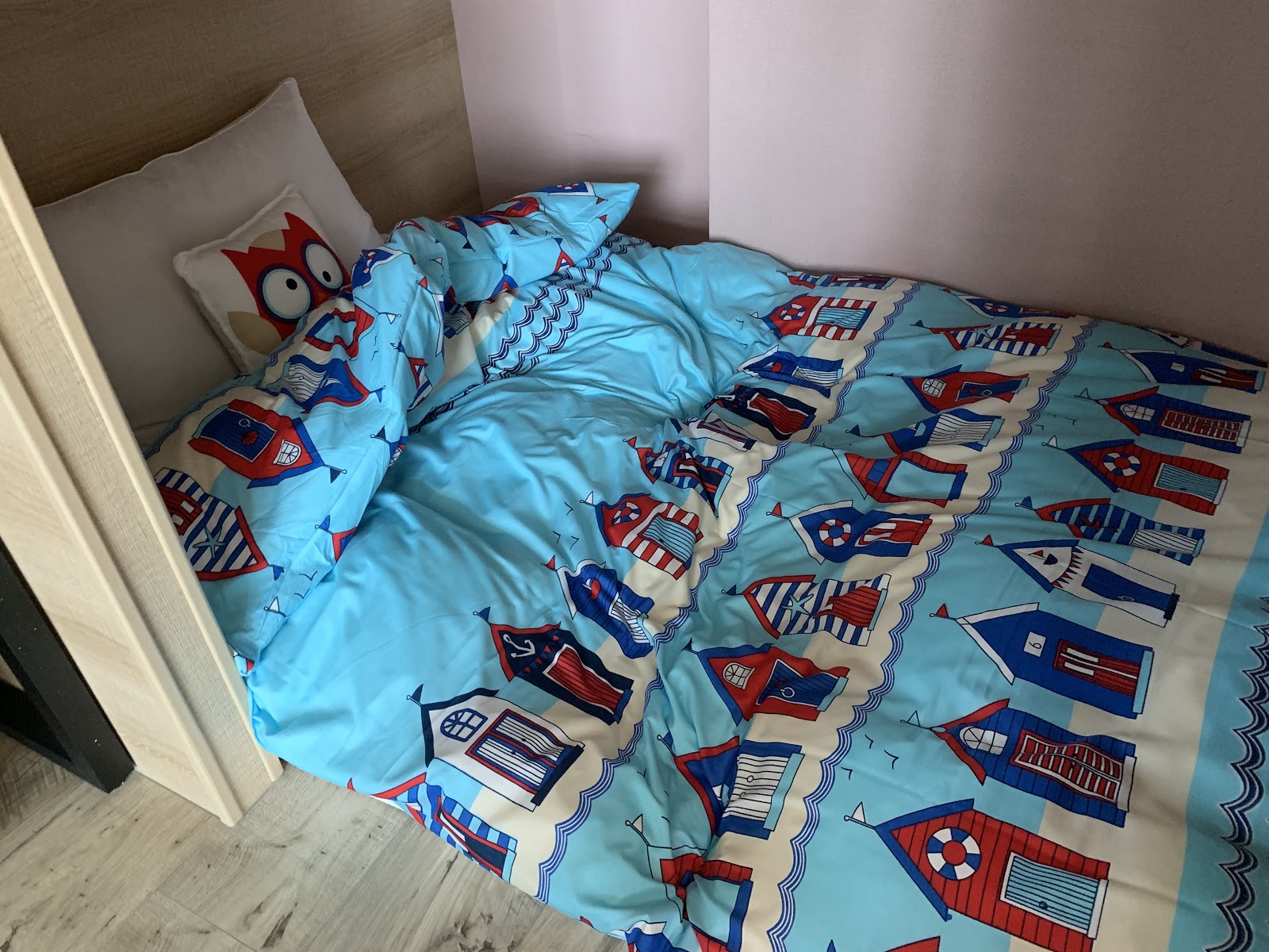 房間裡面有3張床,1張雙人的,2張單人的(應該是小孩床,不過我跟女兒一起睡也還可以)。