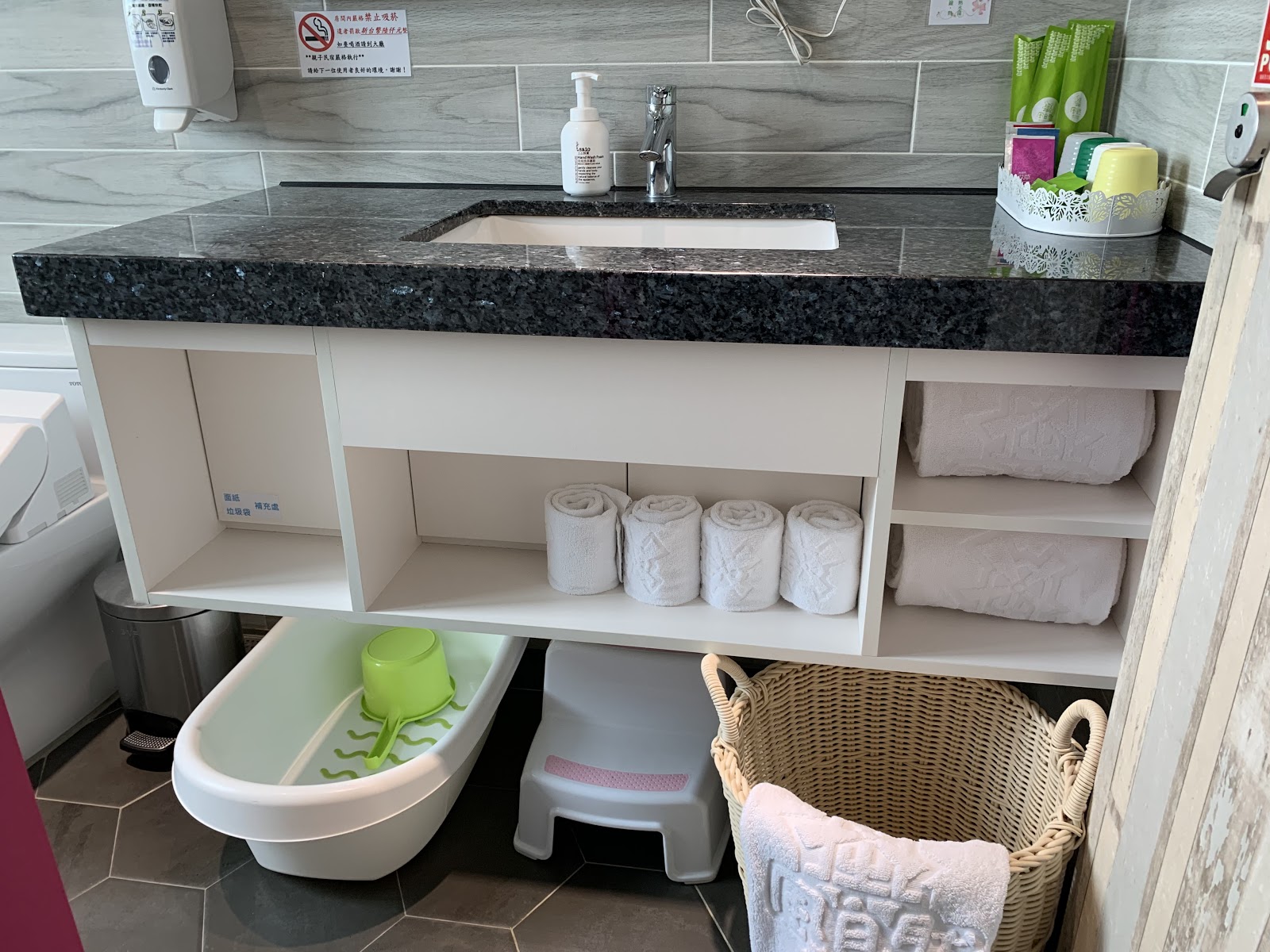 洗手間裡也有小孩的腳踏讓小孩刷牙。