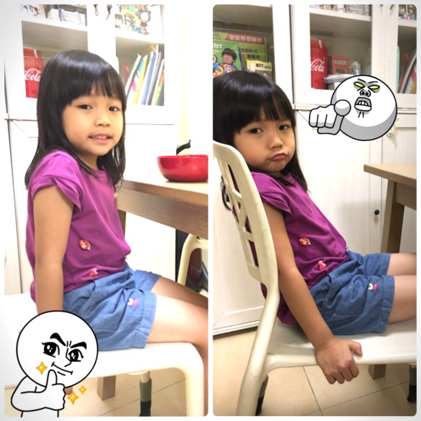 媽媽總是覺得貼著櫈背來坐是最舒服,可是鯨魚家姐蝦子細佬均說這樣最不舒服,無論怎樣拉著他們貼櫈背坐,他倆總要移至櫈邊,讓雙腳鬆弛掠在櫈邊(雙腳fing fing)!