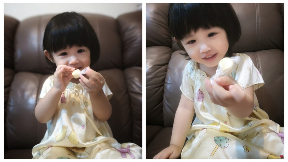 我不會給她吃太多, 一天最多只能一粒~ 而且媽媽們也要留意, 每試一種新的乳製品時要先少量餵食, 看看BB 有沒有不良反應如腸胃不適或起濕疹等, 如果沒有不良反應才慢慢加份量啊! 另外安佳粒粒芝士都算大粒, 像糖一樣, 有機會令幼兒鯁喉窒息, 所以媽媽們可以用刀把芝士切成2-3份再給幼兒進食!